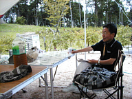 | 台風6号の動きを気にしつつ、今年7月にオープンしたばかりの木立に囲まれたオートキャンプ場「帝釈峡まほろばの里」に行ってきました。目的はもちろんカブトやクワガタをゲットする為。成果はミヤマクワガタのオスが1匹、ノコギリクワガタのオスが1匹、コクワガタのオスが4匹、クワガタのメス大が12匹、中が10匹、小が11匹、カブトのメスが1匹と、とんでもない数が採れました。先週に引き続き蟻には悩まされましたが子どもたちは大満足。また、中国新聞の取材もあり、9月1日発行の県民だよりに掲載される予定です。 |