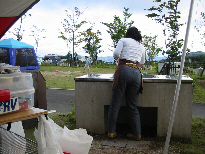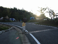 そこには前日からサバイバルキャンプにチャレンジ中のROKIさん&あゆみさんご夫婦と、なんと朝4時に長崎を出発された門田さんが・・・テントとタープをパッパと立ててビール(発泡酒)持っておじゃま虫。今考えると、自分たちの飲み物しか持っていってなかったなぁ。「なんてやつだ」って思った?そのご続々やってきた皆さん・・・バキ!事件だ・・・