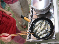 前の日に釣った魚で朝ご飯。持っててよかったモービルクール!!