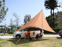 今回の私の装備はソロの為、テントは張らずに車で寝ることにしカーサイドタープを張ってみました。これってスノーピーク製品なんですよ。知ってました?