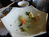 | 食べる!!カツオのたたき、カツオの炊き込み御飯、カツオの刺身が入っていた器です。(笑)うまかったなぁ。思わずカツオのたたきはおかわりしました。中土佐町のたたきは温かいんですよ。あぶってすぐを切って盛り付けてあります。絶対に病みつきになります。カツオはダメだって人でも間違いなくバクバク食べれますよ。 |