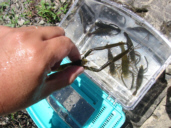 | 海!!サイトから歩いて下に下りるとそこは海岸。ただ岩が多く靴を履いたほうが安全。いろんな色の熱帯魚が泳いでました。ちょっと離れた大月エコロジーキャンプ場にもサイトチェックに行ってみました。ここもすぐ下は海岸。とっても綺麗な海でシュノーケリングを楽しむにはこちらがいいかも?パンの耳を持って海に入ると熱帯魚が寄ってきます。 |