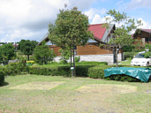 スコール!!突然暗くなったかと思ったらあっという間に降る降る、前なんてワイパーが追いつきません。道はあっという間に川になってしまいました。こんなことが毎日のようにありましたよ。今回は2家族で2サイト。結構贅沢に使える広さがありました。今回もまた撤収したサイトに四角形と八角形のミステリーサークルが出現です。 |