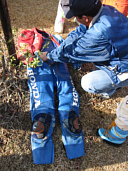 証拠?につなぎを持ってきてくれたんだけどホントに着てたのって言うサイズ。皮が縮んだのかなぁ?それとも・・・ちょっと着てみてよの熱いエールにそれではっと着ることに???ウソウソ違いますよね見ればわかるけど。