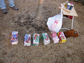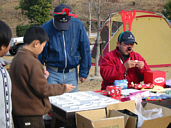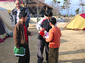 トナカイです。(笑)なにもせずに終れるわけないでしょ。今回はクリスマスですからツーちゃんとトナカイになってプレゼント抽選会。普通のプレゼント交換じゃ面白くないもんね。事前に子供は100均でなにかひとつ、大人は1000円でこれまたプレゼントを買ってきてもらってくじをひきます。それ以外にも不要品など持ち寄ってもらって再抽選。みんな楽しんでもらったかなぁ? |