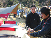 颯爽と登場したのはそう*tohruさん。新製品のElfield DuoとHDタープ”シールド”ヘキサSを設営、早速厳しいチェックが・・・