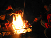 そしてだんだんと小さくなるキャンプファイヤーの炎。最後の夜を惜しむかのように薪を追加しながら夜遅くまで語り明かしました。 |