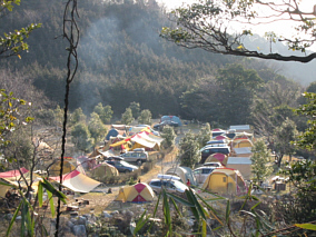 2003年のキャンプインは広島から6時間の距離、三重県菰野町にあるこのキャンプ場から始まった。東は新潟、西は広島、ぞくぞくと日本のヘソ「三重」に集まってきた。もちろんとっても濃いキャンパー達である。