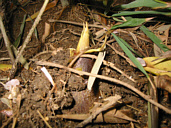 キャンプ場の周辺にはいくつかの竹やぶがある。ちょうど竹の子が生えている時期、これを見逃す手はない。すでに公園整備のため県有地になっている山へ竹の子をほりに出かける。整備されてないので幾分探しにくいが子供達はよく見つける。何本かゲットしゆでて近所のサイトにお裾分け。もちろんその晩ご飯は竹の子ご飯に竹の子の煮付け。とっても軟く美味しかったぁ〜。明日の朝にと少し竹の子ご飯を残していたがこれが残念な結果となってしまった。・・・・・・・・ここで紹介します。片添エイジです。→