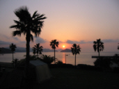 5:30。昨夜早く寝たので目が覚めてしまった。おかげでちょうど遠くの島から上る綺麗な朝日を見ることができた。やっぱりここに来たら絶対に見なきゃね。あぁ〜今日は快晴の予感。