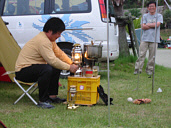 日ごろのおこないがいいのか雨が降る気配なし。だが今日は岡山から嵐を呼ぶキャンパーがやってくる。はたしてこの噂は本当なのか?さてさていったい何時に出てきたのか9時過ぎにはあしてんさん、もりてつさんが到着し昼前にはプハー。プハー。プハー。そしてあしてんさんは・・・行方不明。目の前は海、まさか・・・おぉ〜い、おぉ〜い。そんな心配をよそにまったく。どこにいたかは本人のためにもひ・み・つ。ゴォ〜!またまた出ました素敵なランタン。もりてつさん、そんなに遠くにいなくても、もっと近くによってよ。ボン!ボン! |