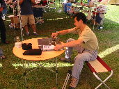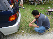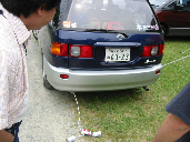 こちらpuuさん。残念ながら今年も前夜祭のみで後ろ髪を引かれながら帰えられました。そんなpuuさんの車の後ろでいたずら好きのツーちゃんは、まるで新婚旅行に行く車のようにカンカンを括りつけていましたが・・・・・しっかりと見つかってましたよ。