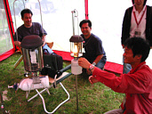 SPW中国のスタートです。9時の受付を前にすでにキャンプ場の入口の前には車の列があったとか。その前にサイトでは*SP上原さんによるもりてつさんのWGストーブのメンテナンス。大丈夫ですよ。問題ないですよ。綺麗な炎ですね。ってことで問題なし。上原さん、こんなとこまでもりてつさんを追いかけて大丈夫でしょ。問題ないでしょ。 |