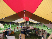 強烈な紫外線から美女達を守ってくれたタープもついに片付ける時がきました。両サイドの張綱とポールを外せばまるで旗のよう。こうやって見ると同じレクタでも形状や色の違いが人目でわかります。今回は温度計を持っていかなかったのですがシールドの下が他より涼しいのは分かりました。ですからクーラーはもちろんシールドの下に置いています。ただ天気の悪い日の事を考えれば半分だけがシールドになった「シールドハーフ L」がほしいですね。(笑)