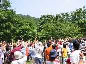 あっと言う間に最終日。土曜日に雷がなり雨が少し降ったものの今朝は霧が出てなんだか暑くなる予感。この日のメインイベントはじゃんけん大会。子供と大人に分かれて「じゃんけんほいっ!!」我が家はしゅんすけがガンダムのプラモデルをゲットし、じゃんけんを終えました。残念。 |