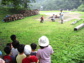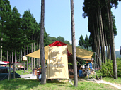 翌朝、早起き?3人(SHさん、ごんちゃん)でモーニングコーヒーを飲む。前夜あれだけ飲んだのにまったくのこっていないのはちょっと不思議。さぁ今日も暑くなりそうだ。ってことでいきなりせせらぎにつかり今夜の策の打ち合わせ。そこらにあったブロックでテーブルを作ったあたりから・・・・・・・・どこからともなくあてが届き、ハッポーが追加され、みんながやってきて、打ち合わせも最高潮になった頃、新潟から上原さんもやって来て、今夜の主賓もやって来て大宴会。 |