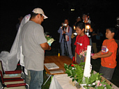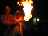さぁそしてテキ屋の面々が仕込み作業に。いつだっただろうツーちゃんから「ウエアー決まったから」と、修行先のお好み焼き屋さんから携帯メールが飛び込んできた。とても素面のときにお見せできる写真ではないのいであえて出さないが(本当は初日はほとんどカメラを持ってなかったもんで・・・)またやってしまった。この時期にしてはかなり汗だくの格好だったがまぁ満足でしたは。ハハハハハ次回は皆さんもどうですか?かぶりものもいいかもよ。