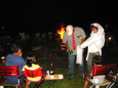 夜はキャンプファイヤー。キャンプ場で丸太を組んでのキャンプファイヤーなんて出来るところは限られてますよね。乾杯、自己紹介の後はあちこちで話の輪が盛り上がりこっちでは酒盛りの輪が盛り上がりクラブNA○KOに強引に連れ込まれ升で飲んだのはなぜかバーボンロック。そのあとどうしたのかミルクが注がれバーボンミルク割。なんだか知らないうちに出来上がっていくみんなでした。でもねミルク割は以外と美味しいんだよね。ちょっとビックリ。