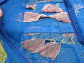 ← 初日に近くのサイトでバーベキューをしていたおじさんが、なぜか次の日もやってきた。なんでも名古屋から遊びに来たんだって。朝、船で釣りに出て沢山釣ったと言うアジをもらった。とても食べきる量ではないので朝ご飯用に干物を作ってみました。(マウスオーバー)