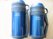 1.7Lにはお湯、1.4Lにはコーヒーやお茶を入れておく。ご存知のようにサーモスの真空断熱技術はサーマルクッカーで証明されているようにかなりすごい。キャンプ場で使うポットを探しているときにまず候補に上がったのがやはりサーモスのステンレスポット。ただこれだと取っ手が飛び出していて収納性に疑問。いろいろ悩んで買ったのがこれ。ショックだったのは最近行ったホームセンターで1.4Lが1,480円で売っていたこと。1,000円も安い・・・負けた。ちなみにこのデザインは廃止です。 |