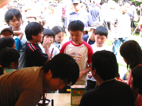 ←じゃんけん大会。ちょっぴりスリムになったなべちゃんとじゃんけん。こっちがパターンを読んでも「にちゃっ!」と笑ってはずしてくる。それにやられたごんちゃん。(マウスオーバー)