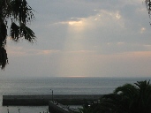 → 雲が多くなってきました、切れ目から登ったばかりの太陽がスポットライトのように海を照らします。映画「コクーン」を思い出しました。