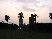 ← kuma-usaさんが朝日を仲良く写しておられました。2日間とも四国上空に雲があり高い位置からの日の出でしたが何時見ても夕日のようです。(笑)kuma-usaさん曰く「これはハワイの夕日ってことで・・・・」行ったことはないけどこんな感じなんだと妙に納得。