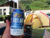 | 久々のファミリーキャンプです。9月にあった2度の3連休は、真ん中に小・中学校の運動会がありキャンプに行けずイライラ。この3連休も初日が展示会で仕事。ってことで1泊しかできない。山陽自動車道崩落により渋滞が予想され到着が遅くなってはデイキャンの9時からチェックインするべく7時前には自宅を出発。が、早く出たもんだから岩国ICで降りてもまったく渋滞ナシ。玖珂のマックスバリューで追加の食材を仕入れ、キャンプ場まであと10分の所で予約。今回はいつもより荷物を減らしているので速攻設営完了。そして、まずはいっ杯。今回用意したハッポーはキリンビールが10月5日に発売した冬季限定醸造発泡酒「白麒麟」。今年もさらに美味しくなり満足!! |  |