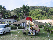 ← いい天気だね。連休だと言うのにサイトには余裕がありみんなゆったり気分。海を見ながらのんびり。偶然ですが、子供たちそれぞれの同級生家族2組がお隣りにこられました。もうビックリです。