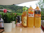 ← 宝探しでゲットした商品です。すべて協賛企業からの提供品で、オレンジジュース2本、濃縮オレンジジュース2本、山口銀行のポリラップ2本、ウイスキーのおまけのグラス1個、鉢植えの花2鉢、日曜日しか使えないみちの駅のジャコ天10枚分のチケット(12月18日まで有効)など。